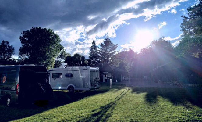 Auf dem Stellplatz unter dem scharfen Stein in Volkmarsen werden Gäste stets willkommen geheißen.