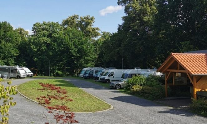 Der Wohnmobilhafen liegt auf einer, mit Lindenbäumen umsäumten Anhöhe eines Buntsandsteinmassivs. Bis ins Zentrum sind es nur wenige Gehminuten. Dort findet man Gastronomie und Einkaufsmöglichkeiten.