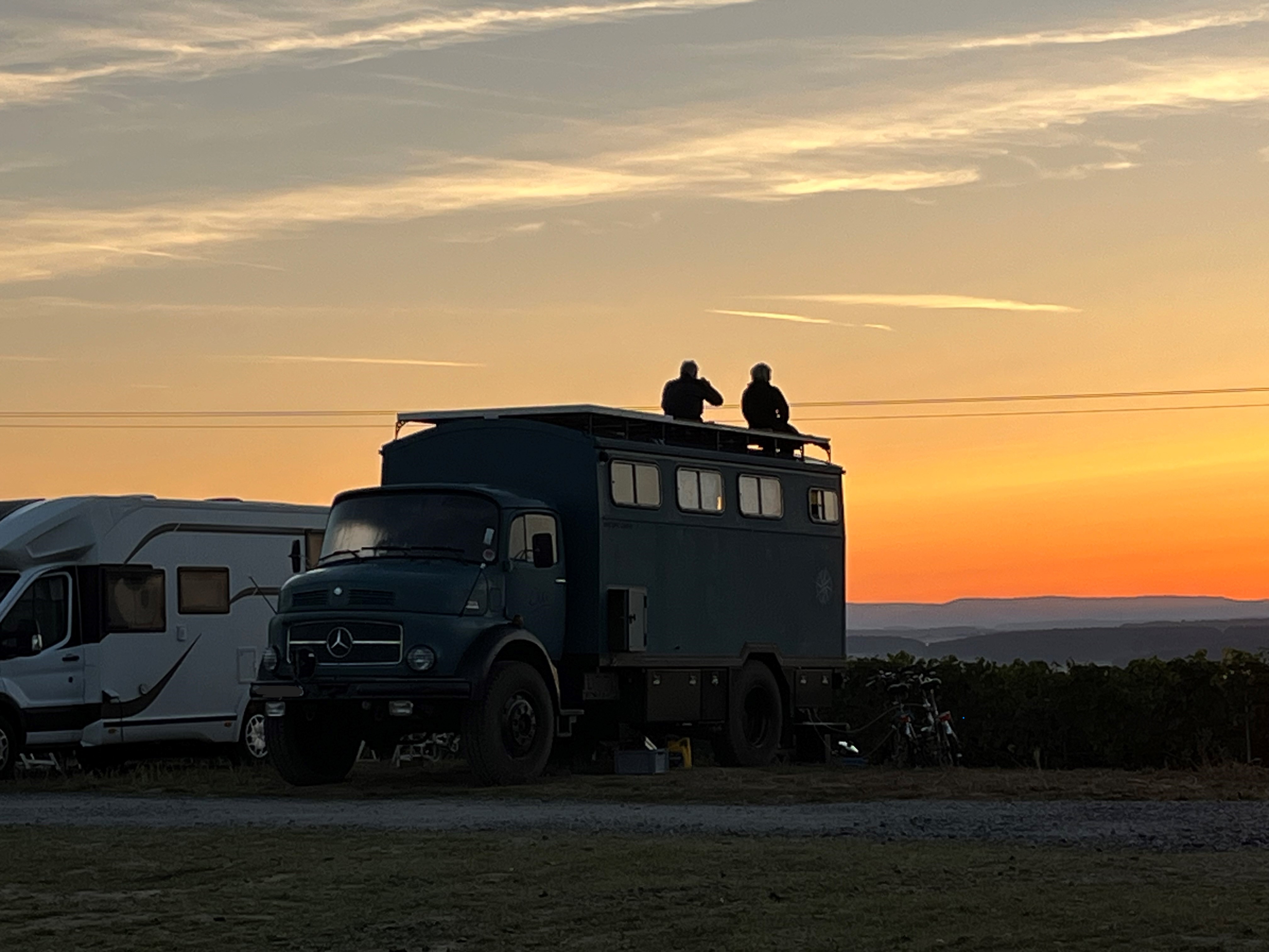 Der Panoramastellplatz liegt direkt am Weingut, eingebettet in Rebflächen und mit einer spektakulären Aussicht von Sonnenauf- bis Sonnenuntergang.