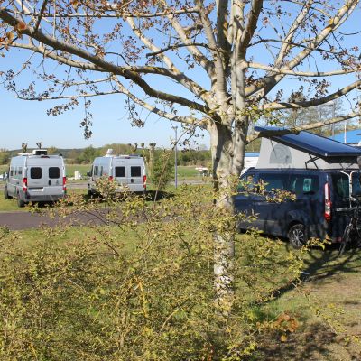 Oberhalb vom Yachthafen befindet sich der Stellplatz für Wohnmobile.