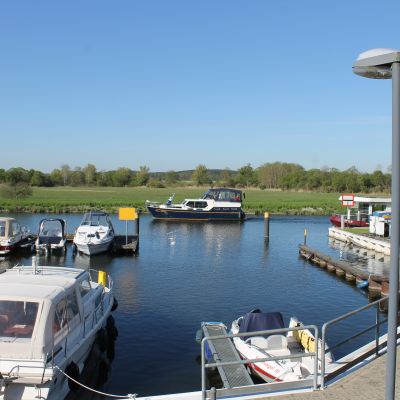Viele Wohnmobilisten erkunden von hier aus die Kleinseenplatte. Die Stellplätze direkt am Hafenbecken sind besonders beliebt. Von hier ist der tägliche Bootsverkehr von den Stellflächen zu beobachten. Wohnmobilgäste mit kleinen Schlauchbooten (keine Trailerboote) oder Kanus können die Slippe kostenfrei nutzen.